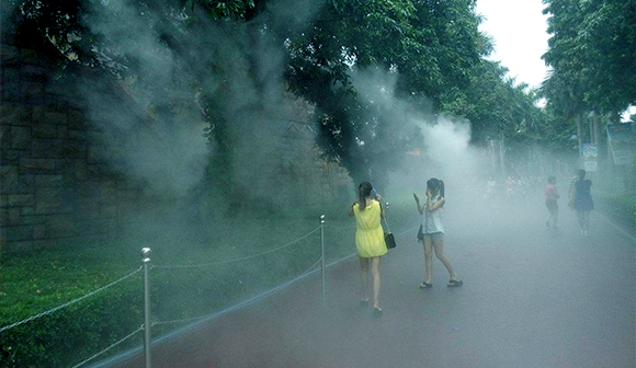 氣霧狀的霧分子,能有效吸收空氣熱量,降低局部環(huán)境溫度,其低廉的運(yùn)營成本,有效的降溫效果,已經(jīng)在世博會及諸多景點(diǎn)進(jìn)行了廣泛運(yùn)用和認(rèn)可,已經(jīng)成為公共空間、小區(qū)等室外降溫的新元素。